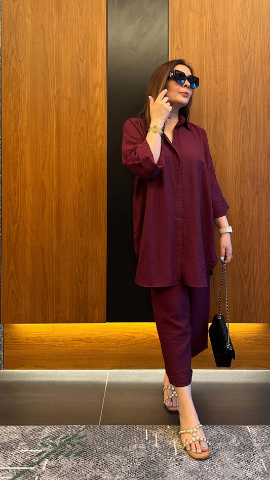 Wine Red Linen Co-ord Set