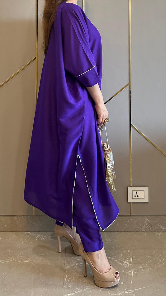 Purple Embroidered Kaftan Co-ord