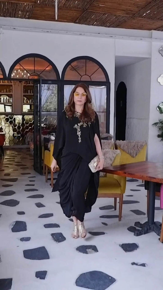Black Hand Embroidered Cape Co-ord Set