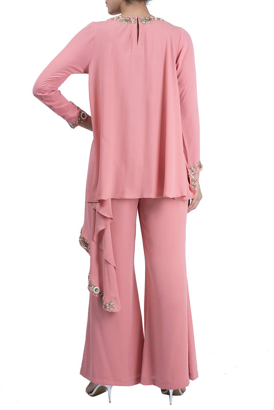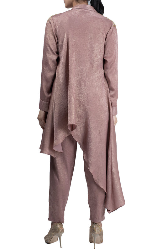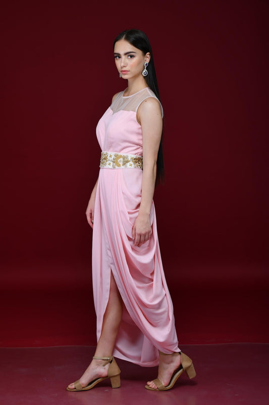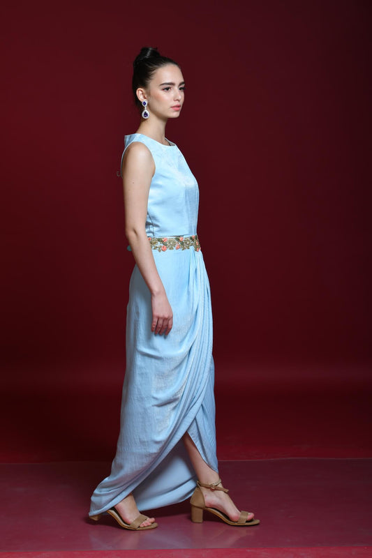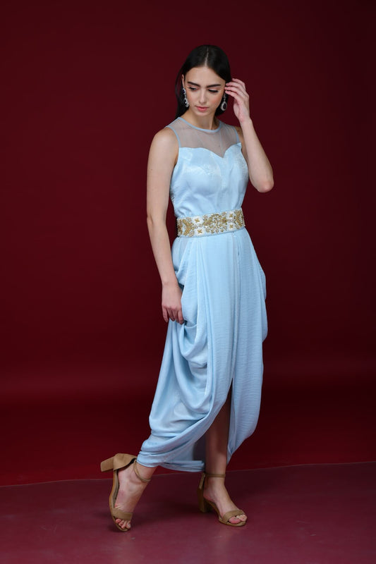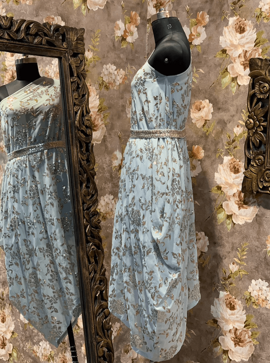 Chikankari One Shoulder Off Tunic Dress, Powder Blue