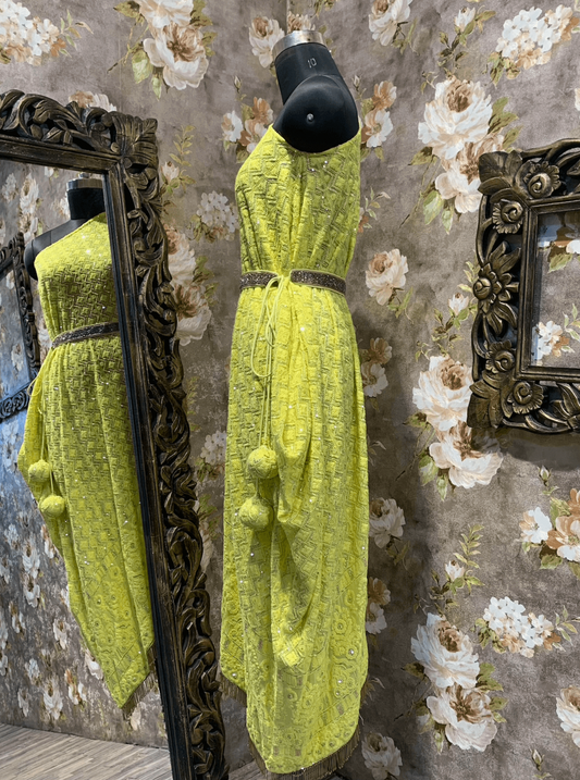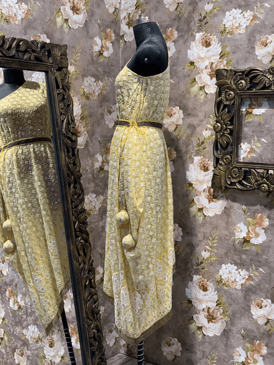 Chikankari One Shoulder Off Tunic Dress, Lemon Yellow