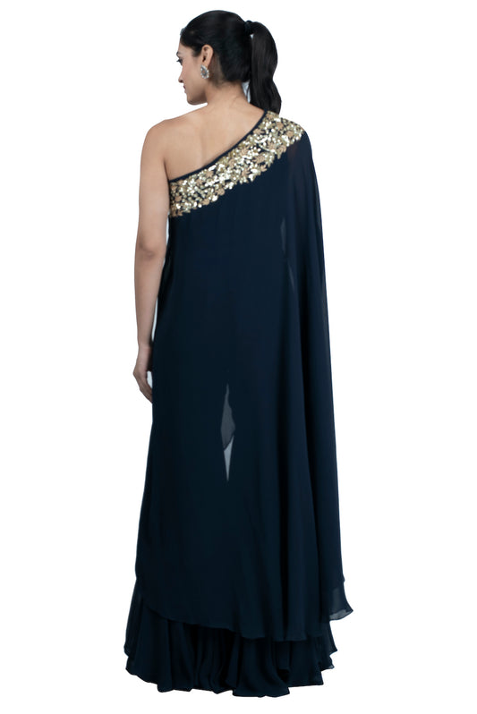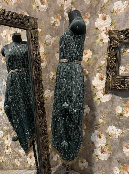 Chikankari One Shoulder Off Tunic Dress, Bottle Green