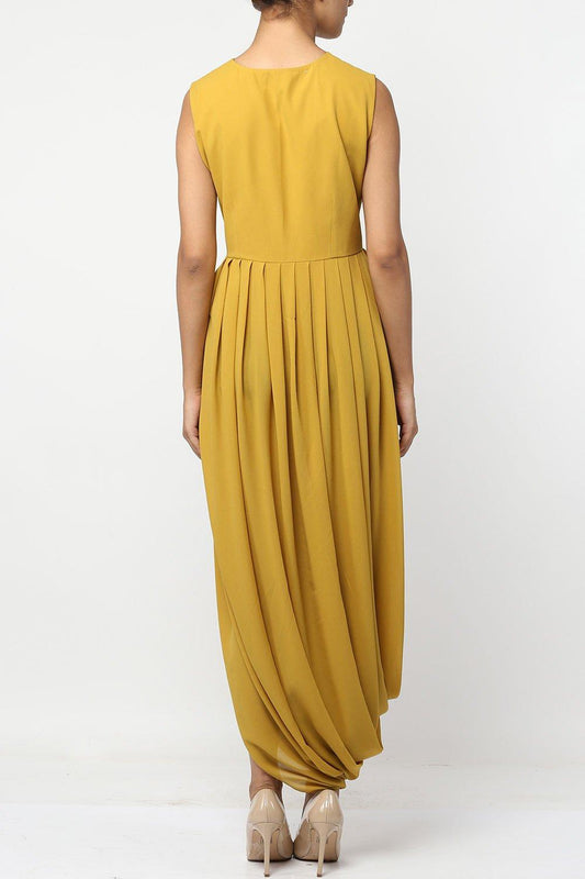 Chikankari One Shoulder Off Tunic Dress, Bright Yellow