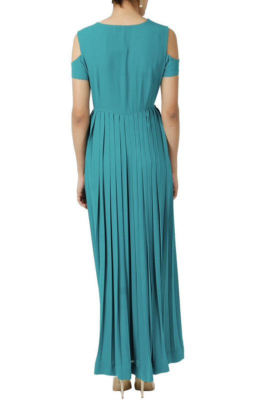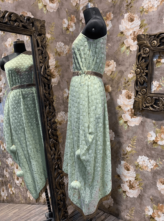 Chikankari One Shoulder Off Tunic Dress, Sea Green