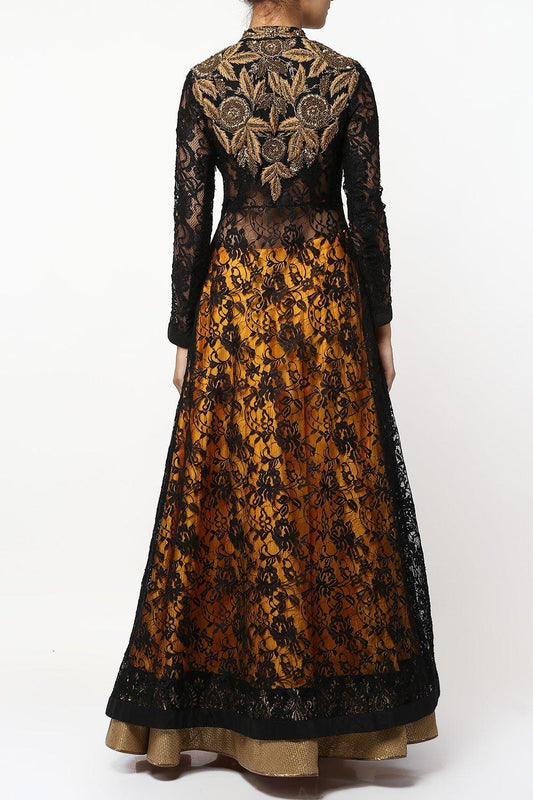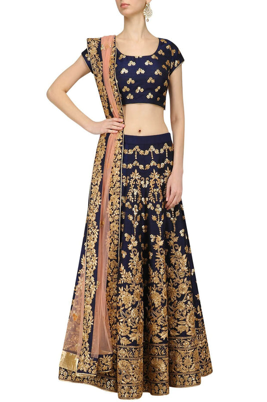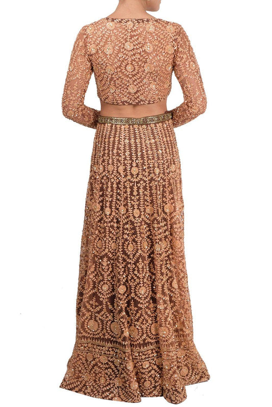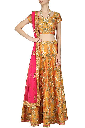 Orange and Gold Embroidered Kalidaar Lehenga Set
