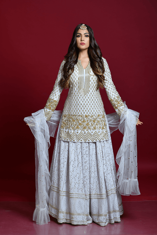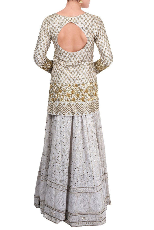 Light Grey Lucknowi Chikankari Embroidered Lehenga Set