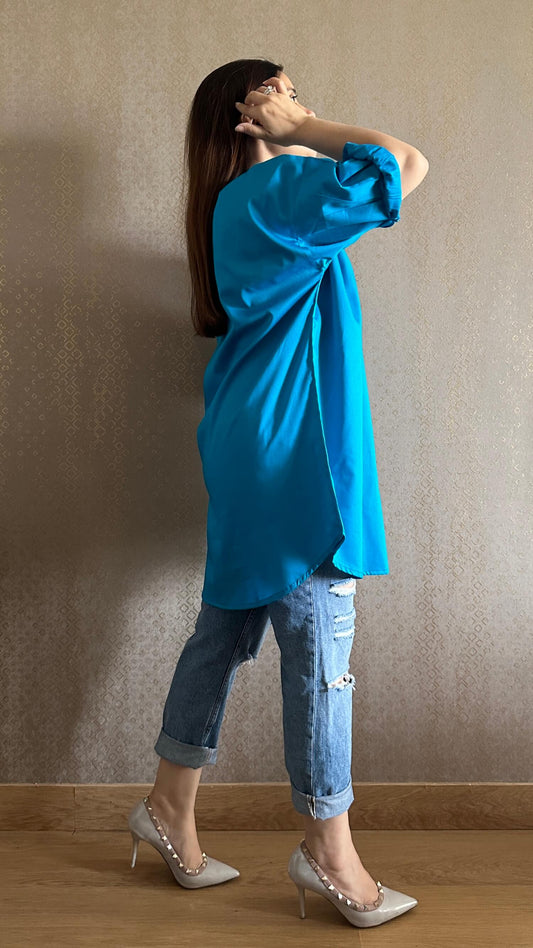 Minty Blue Oversized Cotton Shirt