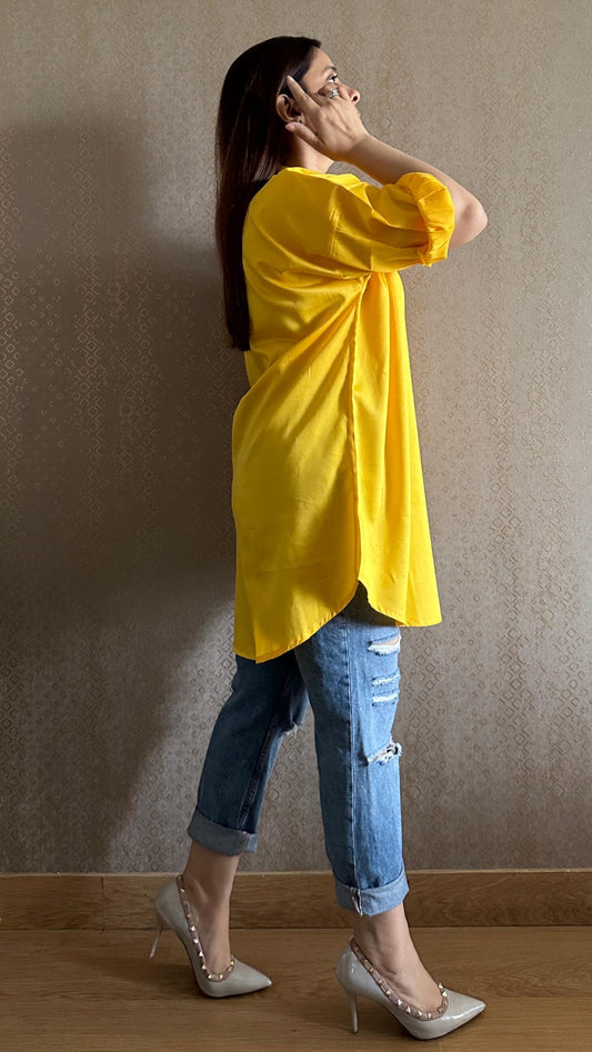 Lemony Yellow Oversized Cotton Shirt