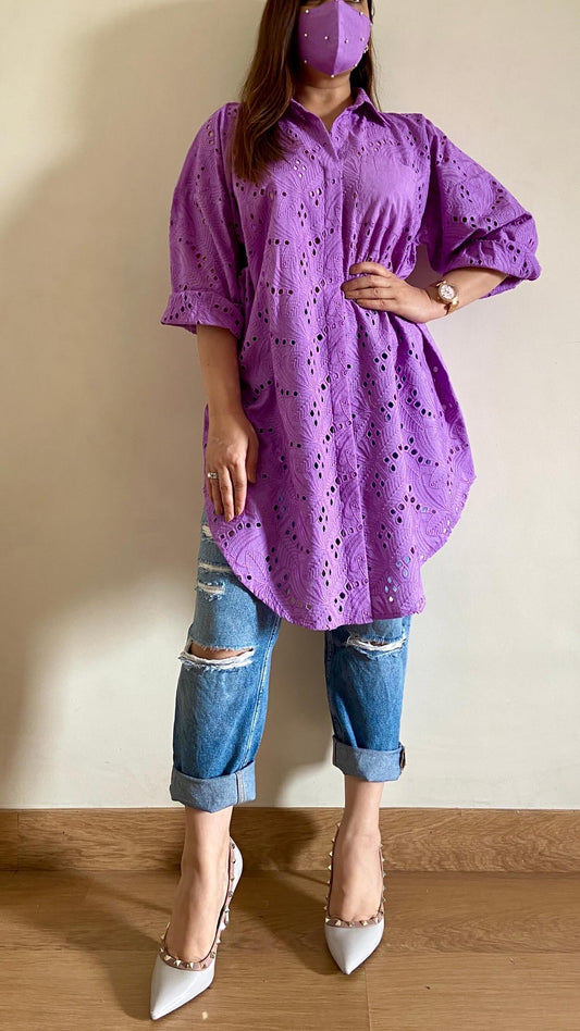 Purple Oversized Chikankari Shirt (Freesize)