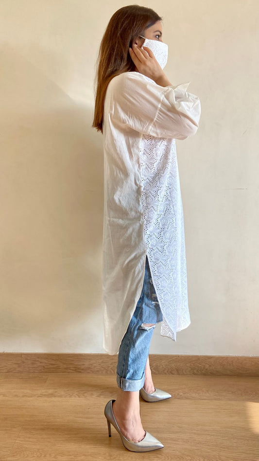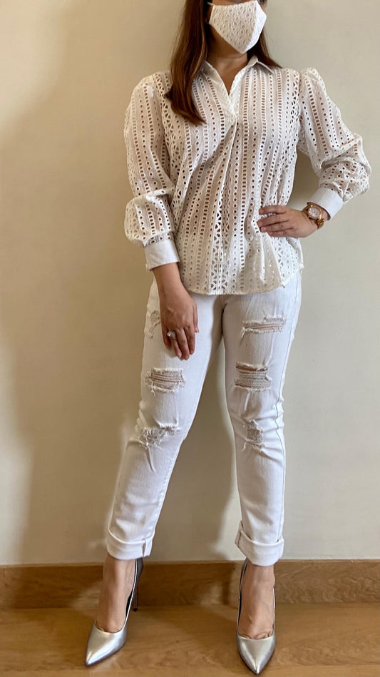 Pearl White Cutwork Embroidered Shirt (Freesize)