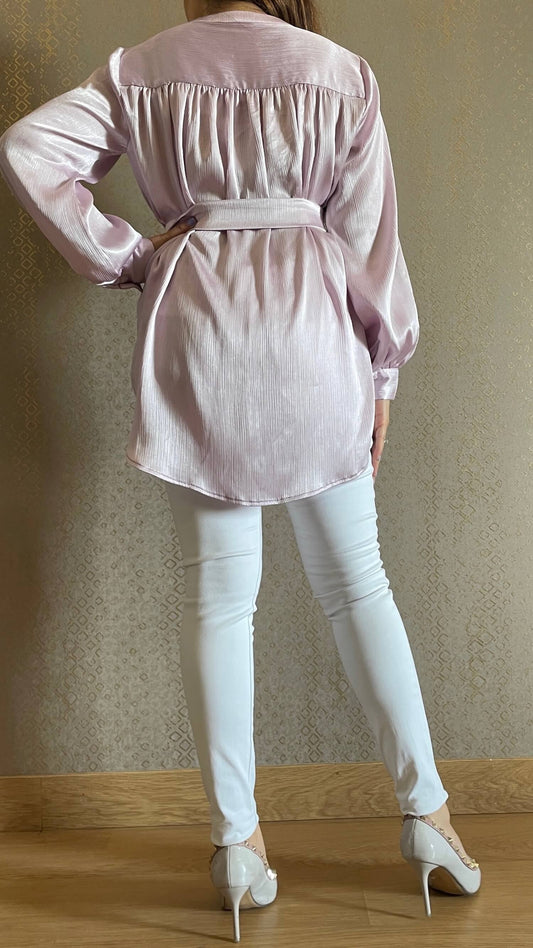 Lilac Hand Embroidered Luxe Satin Shirt