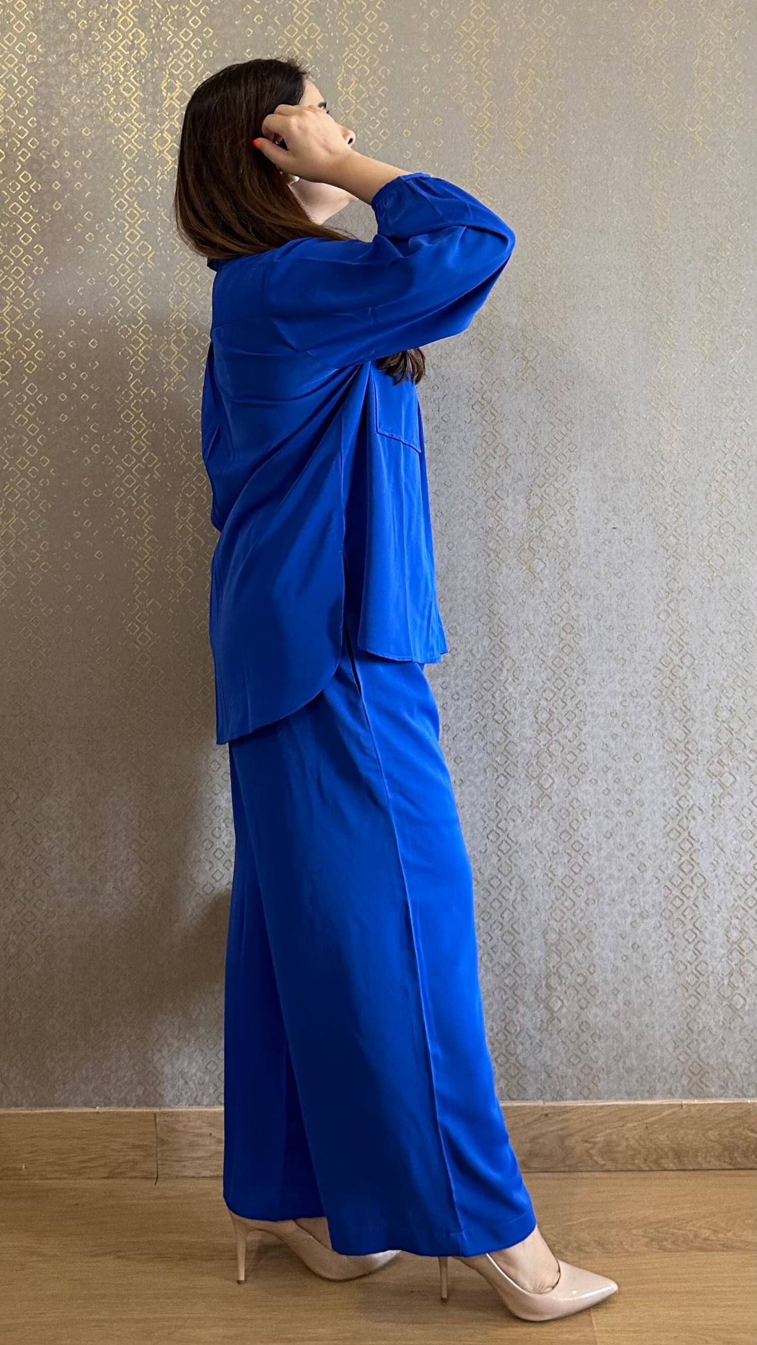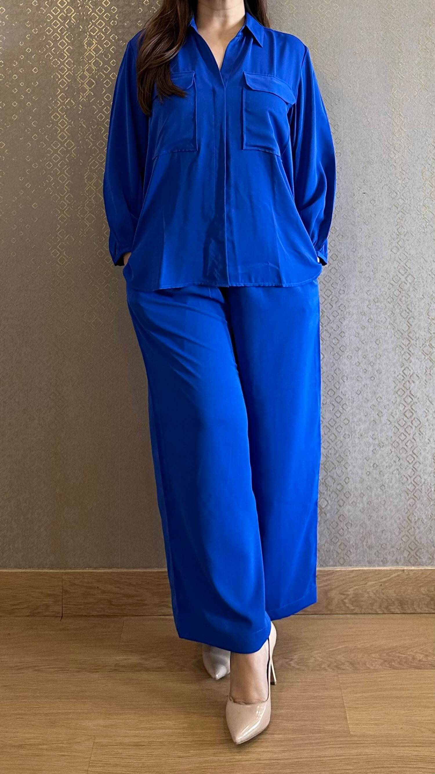 Featuring a royal blue co-ord set crafted in luxury crepe fabric.