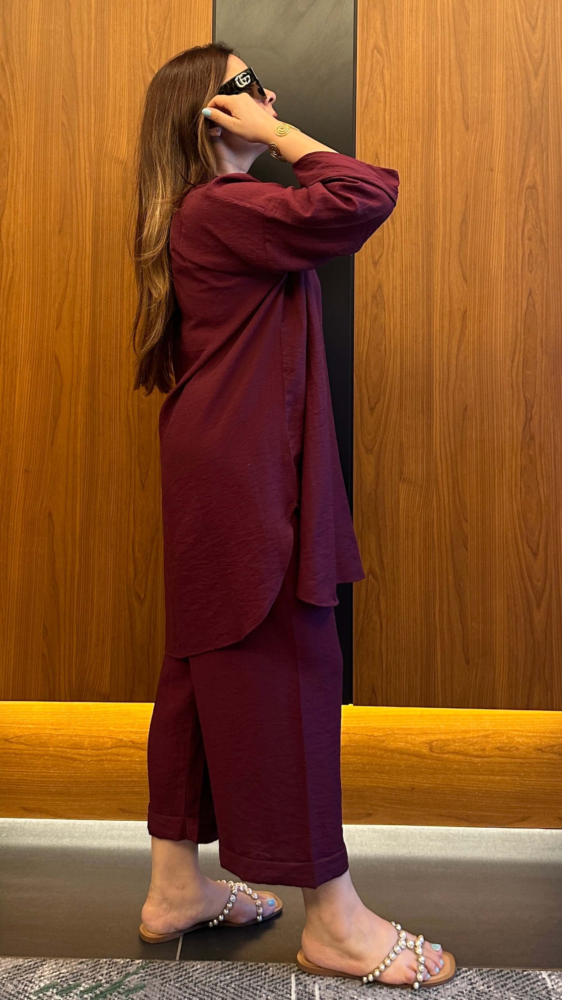 Wine Red Linen Co-ord Set